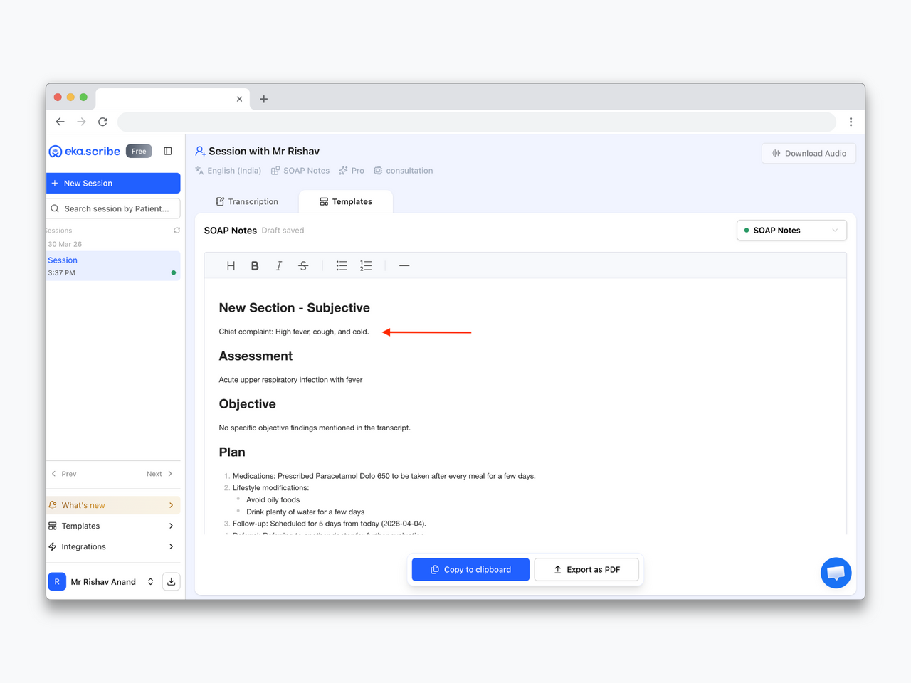 We’ve significantly improved the editing experience on the EkaScribe website to make it faster, smoother, and more intuitive during real usage.