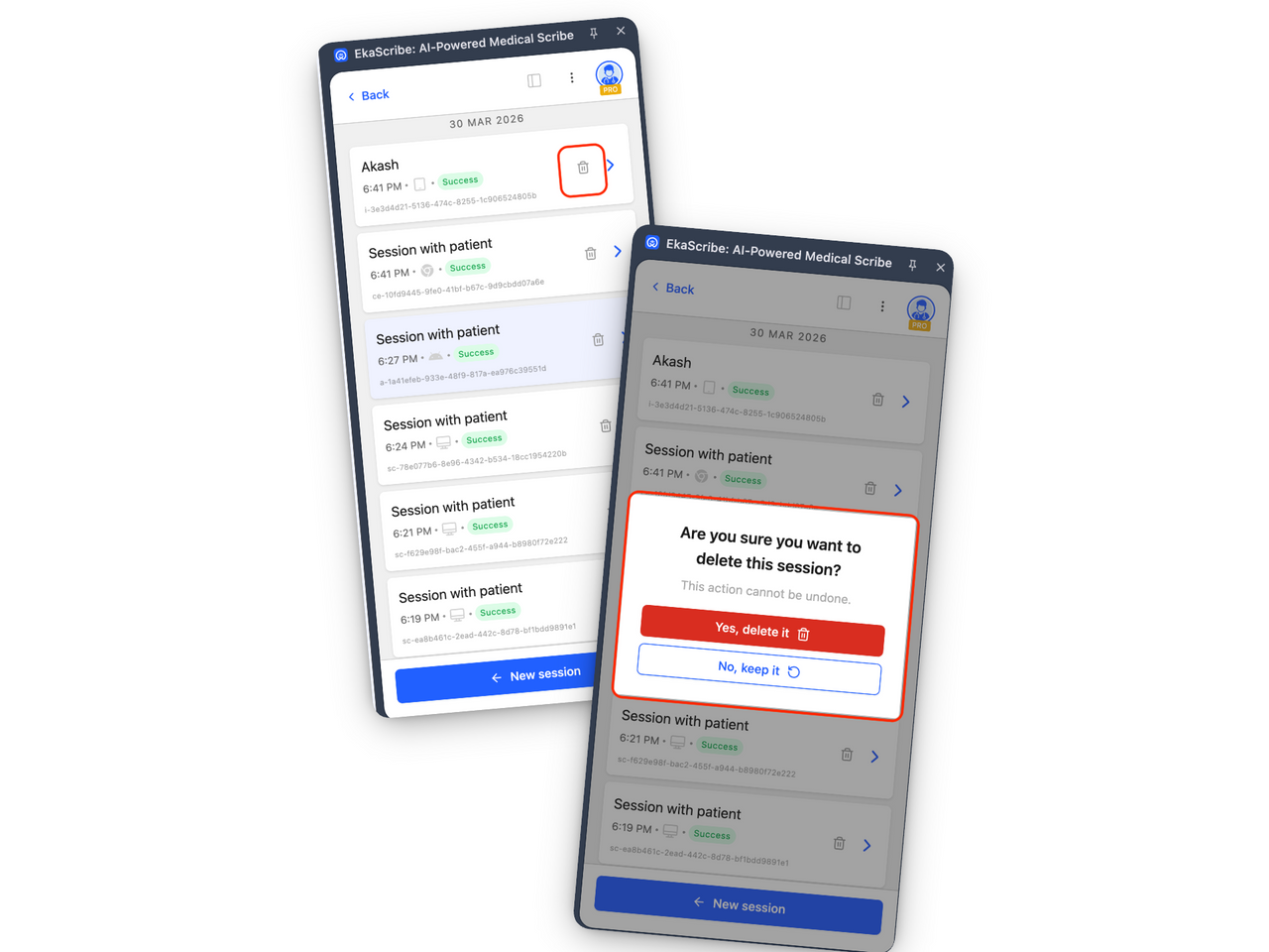If a session was started by mistake or is no longer needed, you can now delete it directly from Recent Sessions. Simply click on the delete icon, confirm your action in the popup, and the session will be removed.