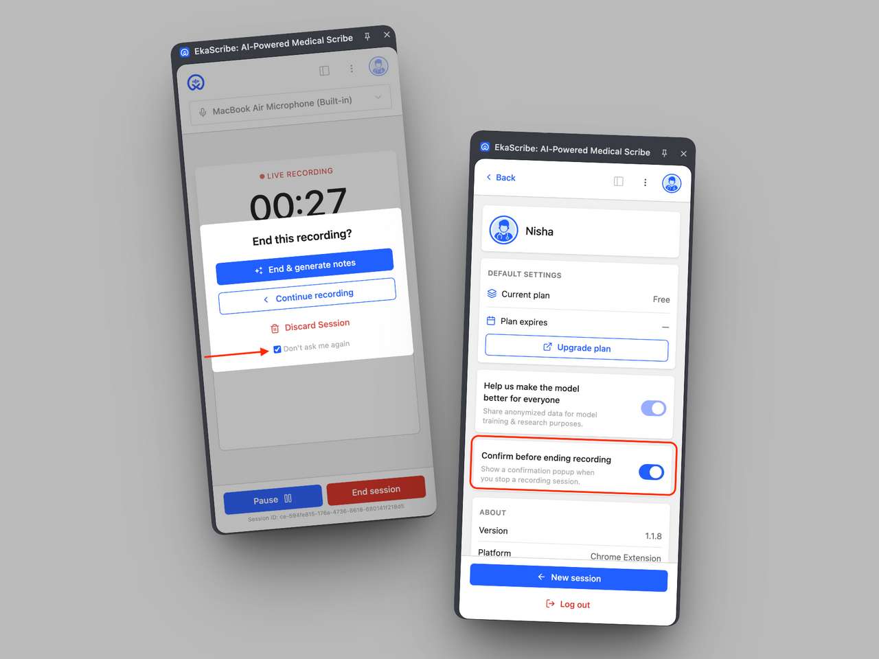 You’ll now see an option “Don’t show me again” in the stop recording confirmation popup. Once selected, the popup will no longer appear in future sessions—making the process faster and distraction-free.